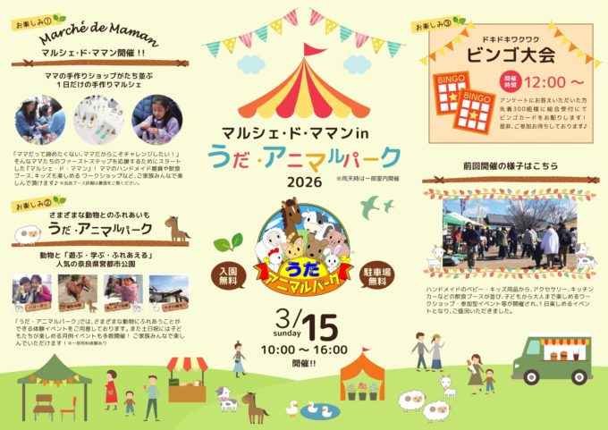 【奈良県】家族で楽しむ春の一日!「マルシェ・ド・ママン in うだ・アニマルパーク2026」開催決定