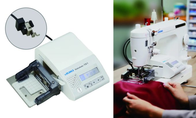 JUKI株式会社(本社:東京都多摩市、以下「JUKI」)は、JUKIの職業用ミシンに取り付けて使用するボタンホール専用装置「EB-1ボタンホーラー」を2023年6月21日より国内を対象に発売します。直線縫い専用ミシンとして、縫い品質、力強さに定評のあるJUKIの職業用ミシンにプラスすることで、ソーイングがもっと楽しくなり、作品の幅が格段に拡がります。