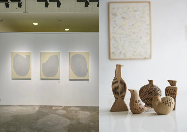 今回はアート作品の他、ノートやカレンダー、育陶園とのコラボレーションで生まれた陶器製オブジェなどを出品。本企画展のメインビジュアル担当。