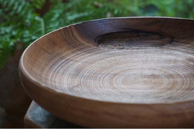 一刀一刀の痕跡が残る形状、テクスチャーは、木そのものが導く形でもあり、作り手と素材が対話した痕跡でもある。
