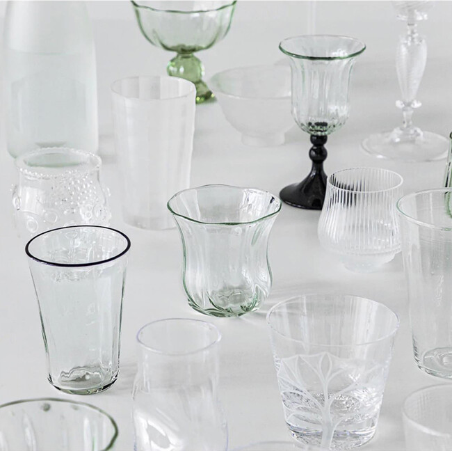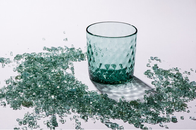 廃車の窓ガラスをリサイクルし、琉球ガラスの職人の手によってモダンな食器に生まれ変わらせた「mado」シリーズ。