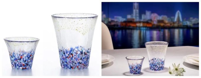 異国情緒あふれる港の街並み、海沿いに立ち並ぶ高層ビル群、そして水面に映るネオンの光。都市と海が調和する幻想的な横浜の夜景をグラスで表現しました。どこか異国の雰囲気を感じさせる色合いと金箔が施された特別仕様で、優雅なひとときをお楽しみください。