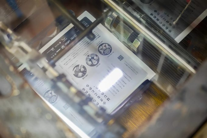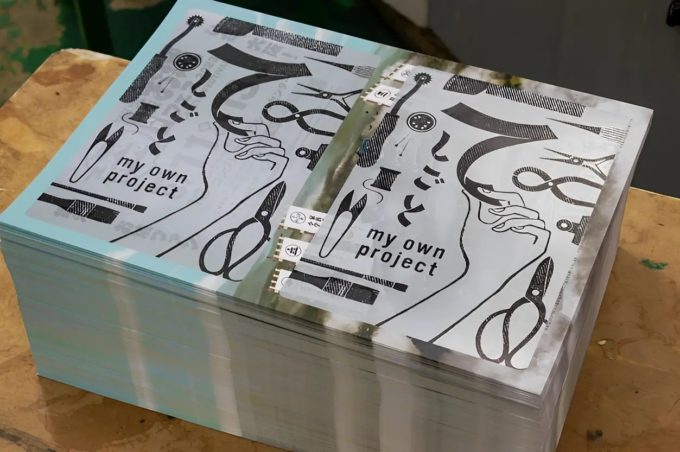 活動の第一弾にて、プロジェクトを紹介したフライヤーは、京都の印刷会社「修美社」の協力のもと、テレビ大阪で廃棄予定だったイベントフライヤーを生かして制作。上から銀とスミの2色を上刷りすることで、捨てられる予定だったフライヤーが、新しく生まれ変わりました。