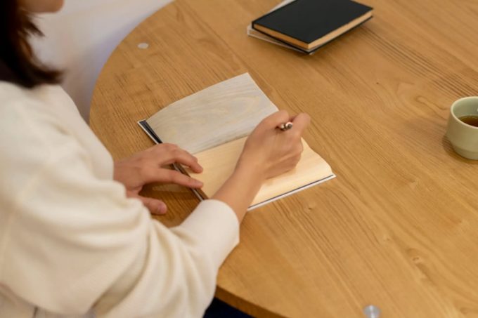 書き心地は個々人で感じ方に差はあるかもしれませんが、一般的なボールペンで書いてみるととても滑らか。「想像以上にスムーズに書けるんですね!」という感想をよくいただきます。ボールペンはもちろん、万年筆、マジックやシャープペン(筆圧によっては穴があく可能性も!?)、色鉛筆やクレヨン。色々なものを使って書いてみても楽しそうです。