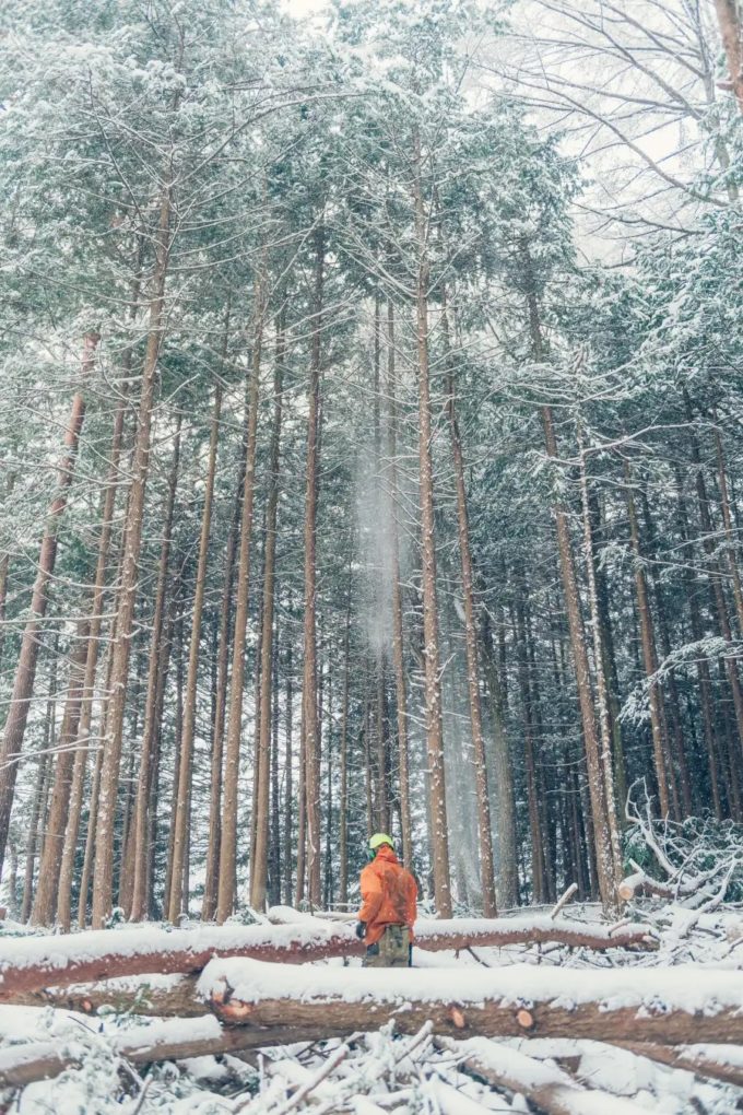 信州経木Shikiは、アカマツを伐るところから、製品にして販売するところまで、全て信州伊那谷産。社内や地域の木こりチームがアカマツを伐り、社内の職人が削っています。トレーサビリティを確保した製品です。