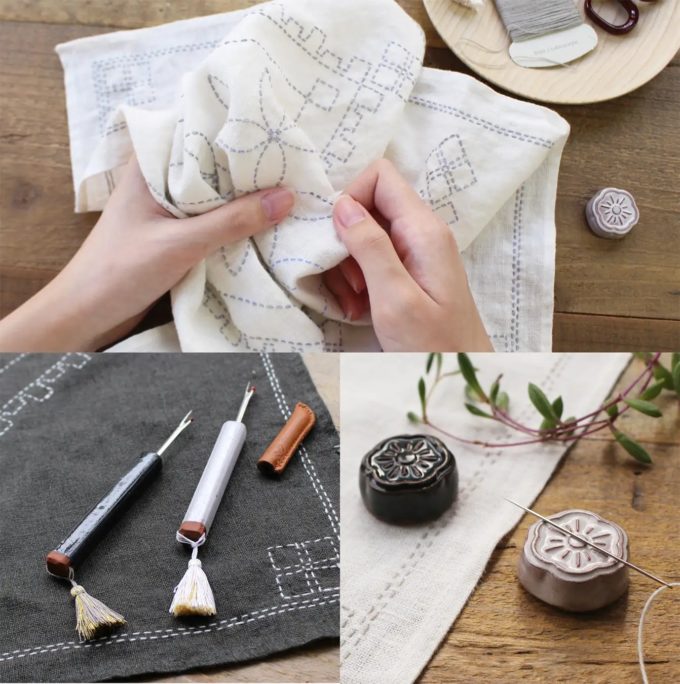 リネンクロスの刺し子キット 七宝つなぎ (静岡×東京)