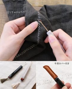 縫い目の糸切りやボタンホールの穴あけに活躍するリッパーの持ち手を淡路瓦で仕上げました。