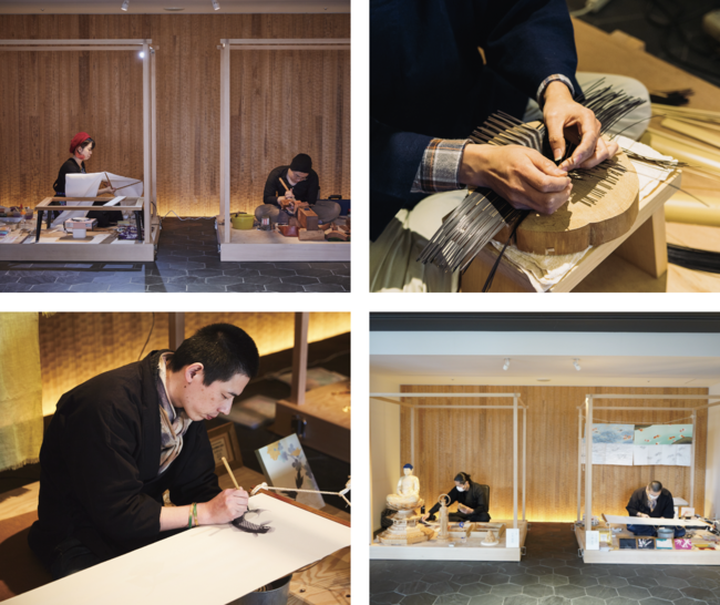 DIALOGUEでは伝統を受け継ぐ職人たちの手仕事をそのままご覧いただけるよう、ホテル カンラ 京都のエントランスに実演ブースを3日間に渡り特設いたします。さまざまな技術・技巧を間近で見られる機会となっていますので、文化や工芸を今なお支える手仕事をぜひ職人たちと”対話”しながらお楽しみください。