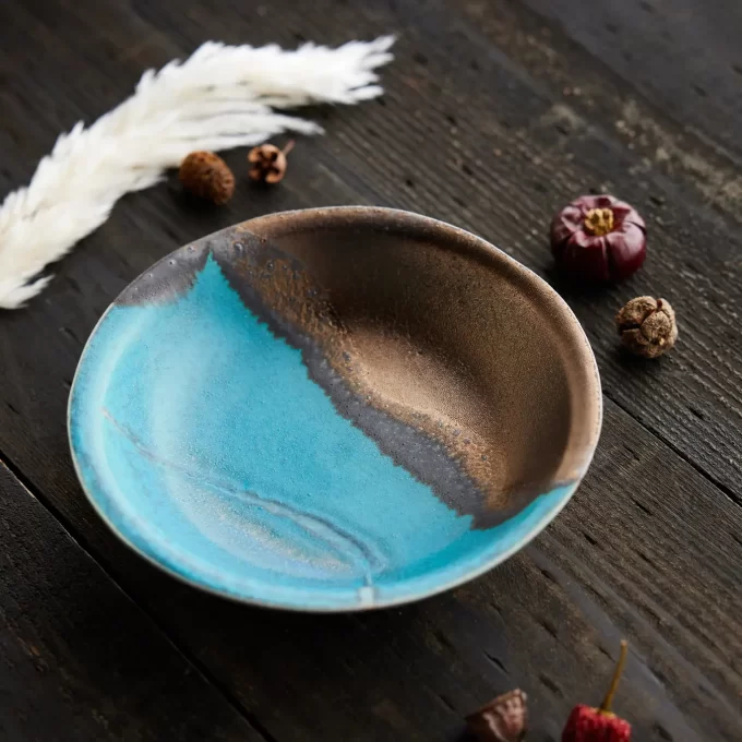 〈信楽四季彩陶(しがらきしきさいとう)〉は、信楽の歴史やその土地の空気感、そこに流れる時間や景色を表現するエモーショナルなうつわ。信楽の土と炎が織りなす季節の表情を二十四節気にのせて、名に季語を冠し、季節を表現している。