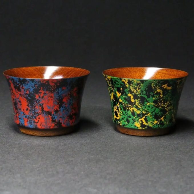 高橋氏は、色彩豊かな変り塗り技法を駆使し、立体作品や酒器、器、小物類など約60点を展開いたします。