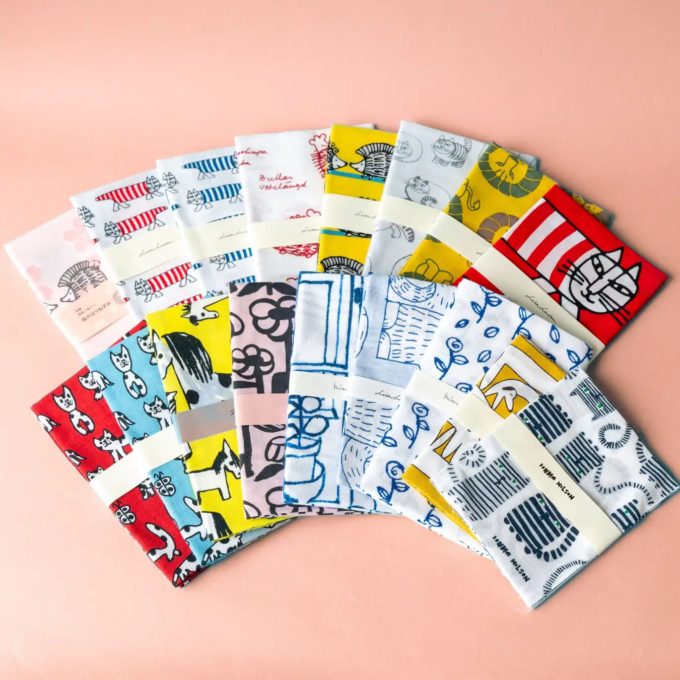 リサ・ラーソンをはじめ、マリアンヌ・ハルバーグ、イェンニ・トゥオミネンなどの作家の手ぬぐいも対象になります。