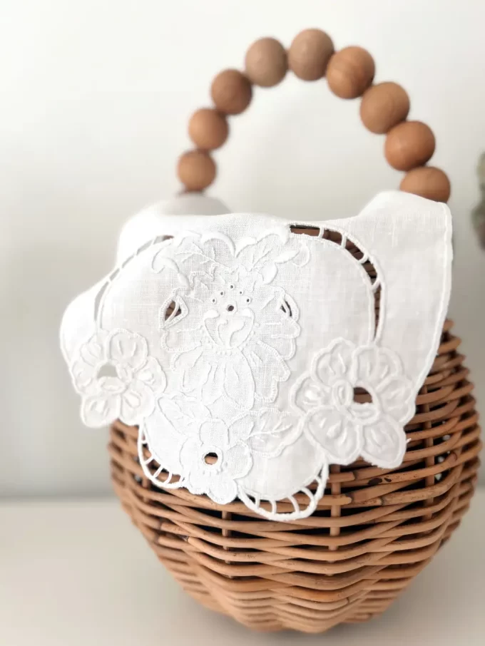 オリジナルデザインのカットワークのモチーフを布に刺し、かごバッグのカバーとして仕立てることで、完成すれば日常使いできる世界で一つの刺しゅうバッグに。日本の手仕事「かご」と、ヨーロッパの伝統技法「白糸刺しゅう」が出会った、数量限定の特別なキットです。