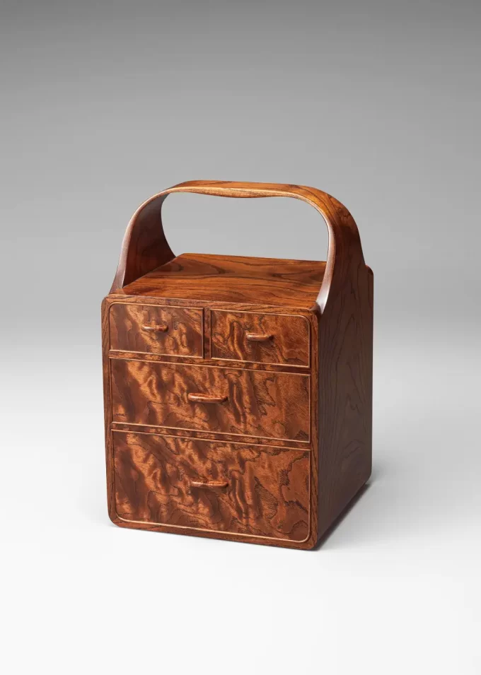御蔵島桑拭漆提抽斗箱 15.8×16.6×25.5cm