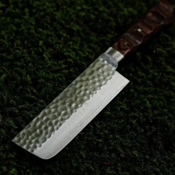 ダマスカス鋼×菱目打ちの美しい刃と鋭い切れ味が特徴。1つずつハンドメイド。