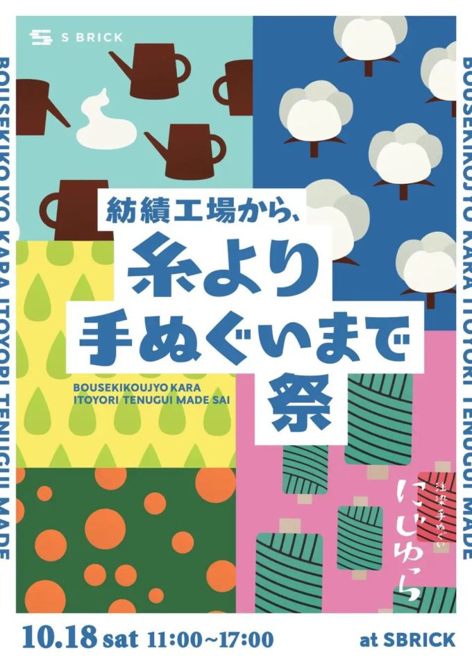 10月よりS BRICKクラフトベース展示スペースで展示を行うくどううたがデザインし、にじゆらが制作するS BRICKオリジナル手ぬぐいを販売します。