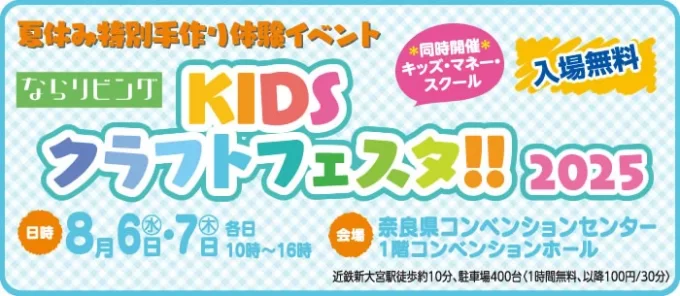 奈良新聞社が発行するフリーペーパー「ならリビング」によるイベント、「ならリビングKIDSクラフトフェスタ!!2025」を奈良県コンベンションセンターにて8月6日・7日に開催します。