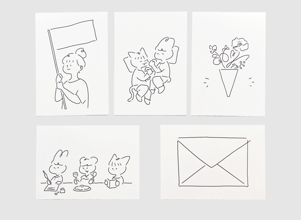 5. オリジナルカード5枚 …織ったモチーフやあそび糸と組み合わせて楽しめます。