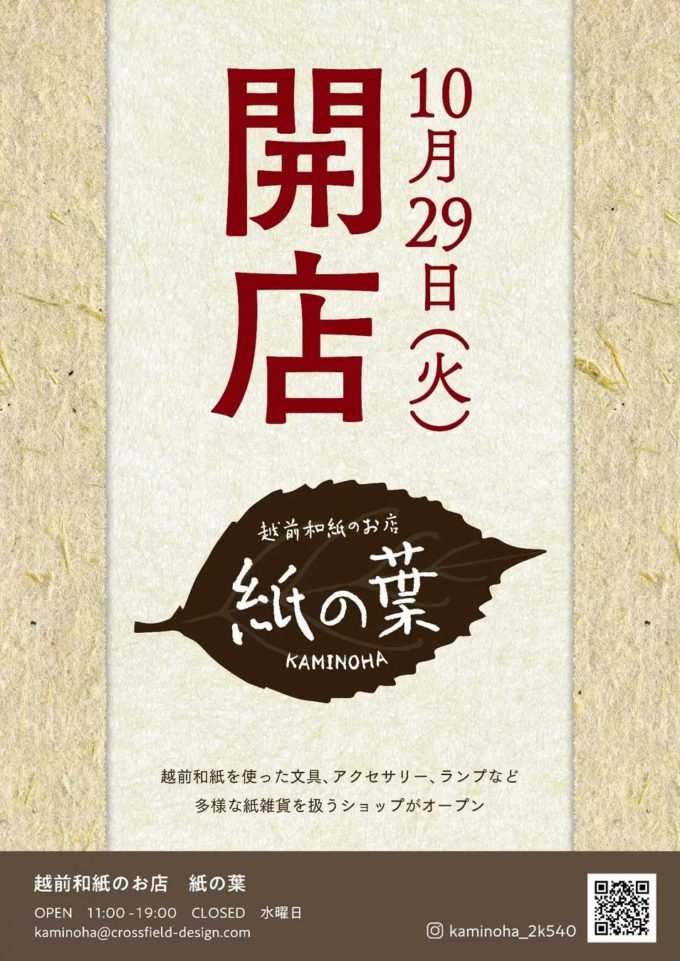 『紙の葉』は、クロスフィールド株式会社(東京都千代田区)による、越前和紙の雑貨専門店です。代表のゆかりの地である福井県越前市の魅力的伝統工芸『越前和紙』。そんな『伝統ある越前和紙を国内外に広く伝えたい』という想いから、和紙専門のアンテナショップ兼常設展示ショップとしてオープンいたします。越前和紙に印刷とデザインの技術を融合させたバラエティ豊かな雑貨や和紙と木の工芸品を提供し、皆さまの暮らしに彩を添えます。