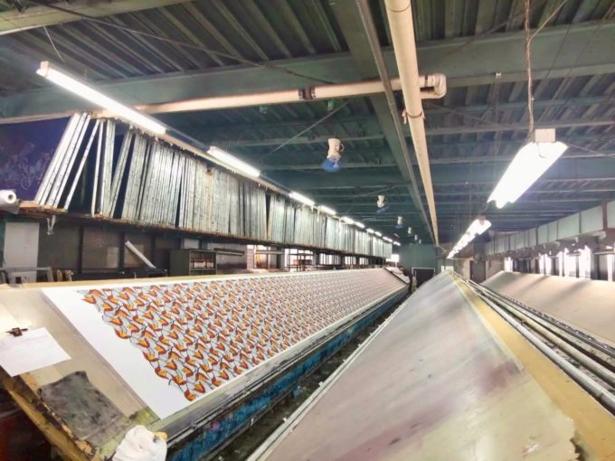 高度経済成長期の京都経済を下支えした業界の一つは、染織業界でした。高級ラインの京友禅や西陣織といったジャンルと、大量に生産することで廉価に取引が可能となった機械捺染のジャンルに二極化しました。後者の機械捺染は、明治維新期に西洋から技術を導入し、大正時代に黄金期を迎えていたことで、昭和には国際競争力のある産業として確立されていたといいます。京都や大阪、和歌山などで機械捺染されたアフリカ向けプリント生地は、神戸港から伊藤忠や丸紅といった大阪の商社をとおして輸出されていました。日本メーカーの開発した「グリーン・ワックス」プリントは、アフリカ市場でも歓迎されました。