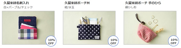 ※初めての方でもお買い求めいただきやすい小物類がメインのラインナップ。10~30%オフを中心とした期間限定割引商品を100点以上取り揃えています。