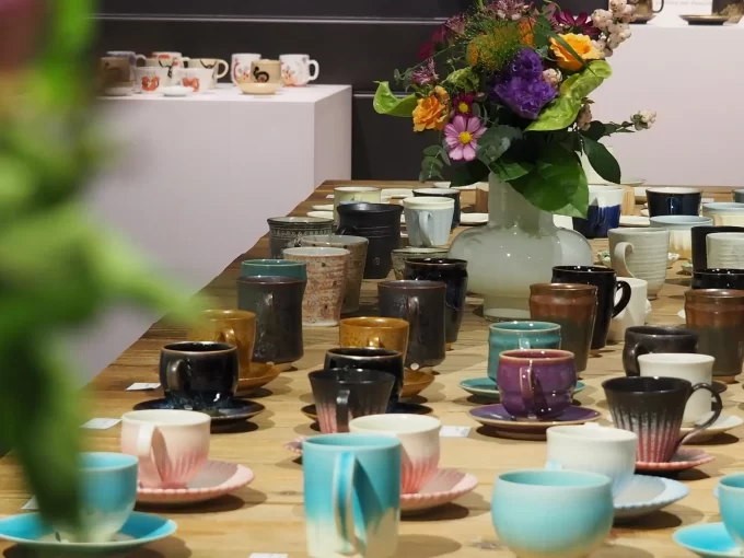 京都で制作する職人・作家たちによる、コーヒーカップやマグカップ、カトラリースタンドにお菓子皿といったコーヒータイムを彩るうつわの数々が、京都伝統産業ミュージアムに集まります。