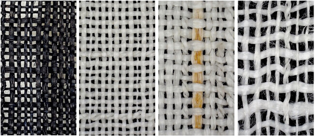 顕微鏡による拡大写真(苧の種類、糸の太さ、撚りの有無などによって微細な差が生じる)