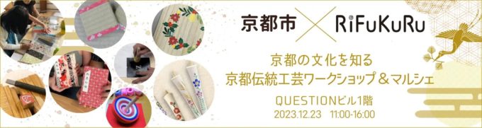 株式会社ニッセン(本社:京都市南区)のサスティナブルブランド「RiFUKURU(リフクル)」が企画・運営を行っている「未来へつなぐ架け橋プロジェクト」の一環として京都市と連携し、『京都の文化を知る・京都伝統工芸ワークショップ&マルシェ』を2023年12月23日(土)に開催いたします。