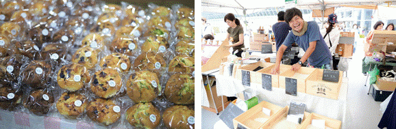 日本各地の選りすぐりのお菓子やパンなどの手作りフードに加え、厳選されたおいしいコーヒーや紅茶が味わえるカフェスペースも設置。食においても作り手と買い手をつなぐ空間をお届けします。
