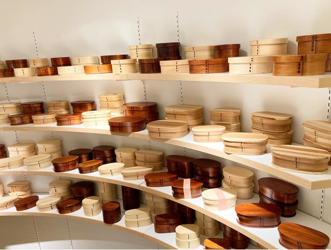 SNSやネットショップでも人気の「曲げわっぱ弁当箱」の品揃え日本一を目指し、オープン当初から約80種類もの曲げわっぱ弁当箱を販売いたします。