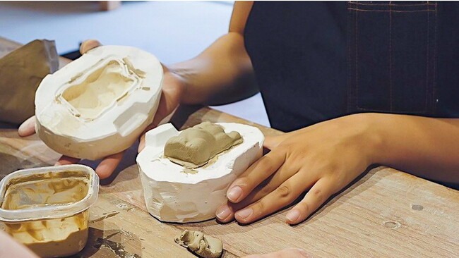 粘土を型にギュッと押し付けて、ポコッと型から外す九谷焼の技法「型おこし」。ちょっとレアな技法で、手のひらサイズの招き猫を作りましょう。 ※後日焼成した作品をお渡しします。