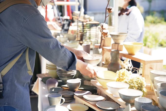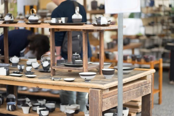 清水焼といえば、伝統的で高級、ハレの日の器というイメージが多いですが、それだけではありません。お買い得な商品から一点ものの作品まで幅広いラインナップをご覧いただけます。また、作り手である職人たちとの交流も陶器市ならではの魅力です。掘り出し物の器や職人たちと出会いに来てください。