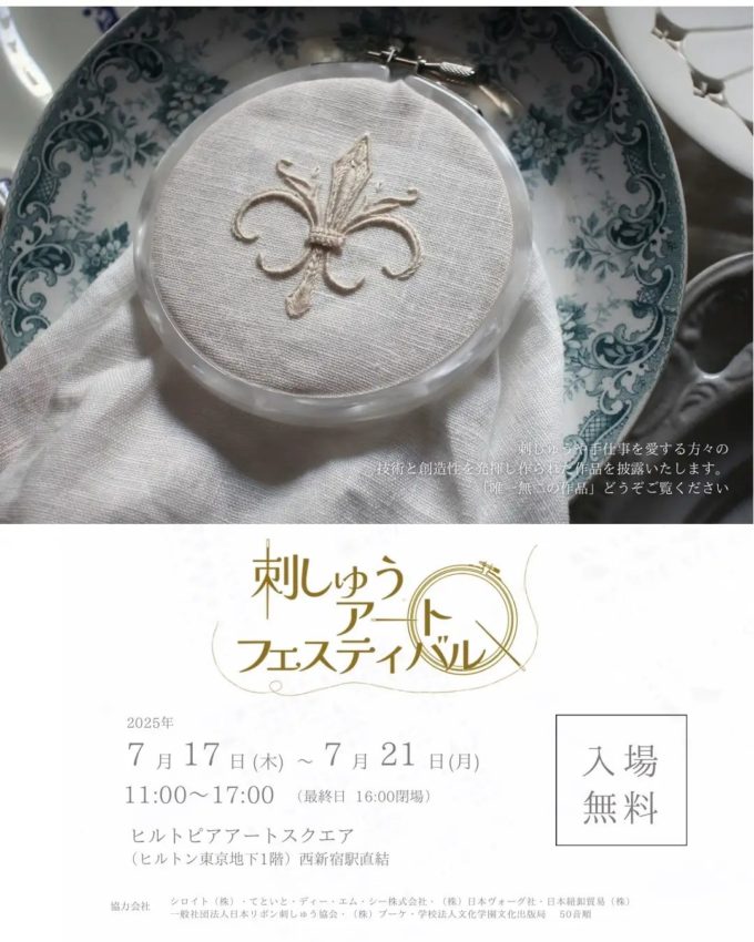 刺しゅう好き、クラフト好き、新しいジャンルの出会いを楽しみたい皆様、ぜひお越しください。お待ちしております。