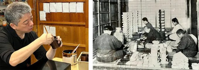 生のうるしを塗って染み込ませ、乾くごとに表面を拭き取る工程を7回ほど繰り返す技法「スリ漆」によって、美しい木曽天然ひのきの木目を際立たせています。5年、10年と使い続けると変化していく色合いも、店主として伝えている特徴の1つです。