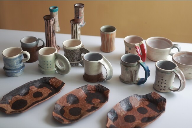 生まれ育った島や旅、出会う人から着想を得て制作しており、一点ずつ異なる器の表情や、色の組み合わせがユニークな、アート性溢れる作品が特徴。