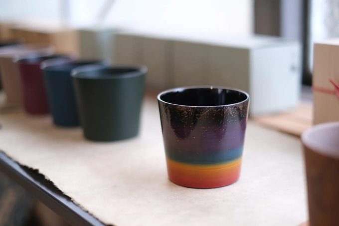 このたびスタートするのは、京都・西陣の“色漆”をたっぷり使って楽しむ、新感覚の工藝ワークショップ。カラフルな色漆の中から好きな色を選び、自分だけの漆カップを自由に塗って仕上げていきます。