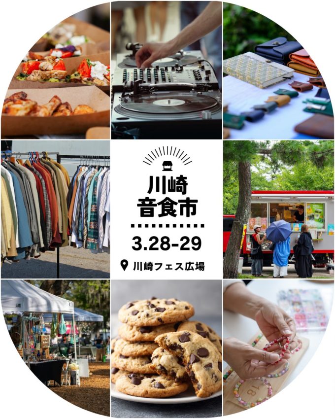 2026年3月28日(土)と29日(日)の2日間、JR・京急川崎駅から徒歩1分という好立地な「川崎フェス広場」にて、五感で楽しむマーケットイベント「川崎音食市」が開催されます。良質な古着やクラフト作品、厳選されたフードが集結し、心地よい音楽とともに特別なひとときを演出します。
