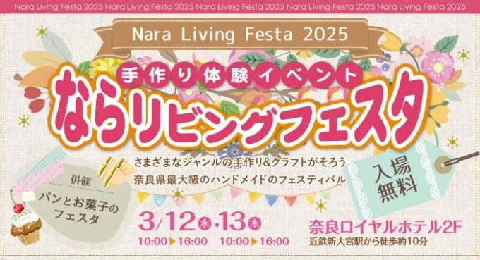 奈良新聞社が発行するフリーペーパー「ならリビング」によるイベント、「ならリビングフェスタ2025」を奈良ロイヤルホテルにて3月12日・13日に開催します。