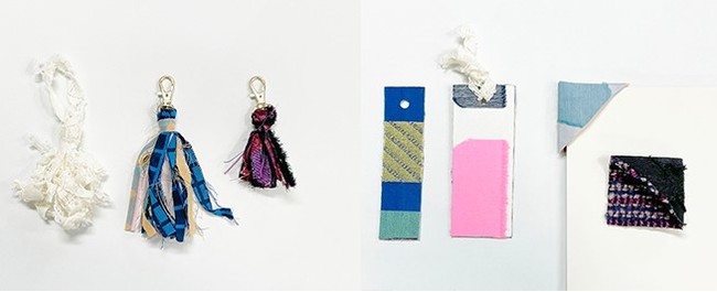 全国のパートナー工場から集めた残布や残糸でしおりやアクセサリーを手作りできます。