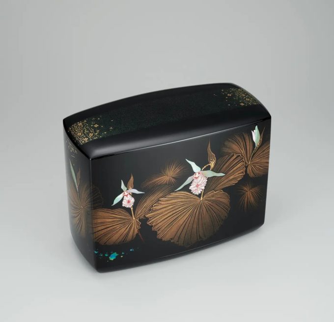 漆芸=蒔絵箱「木洩日の熊谷草」(まきえはこ「こもれびのくまがいそう」)鬼平慶司