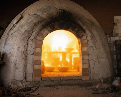 最後に、おおよそ中温〜高温(約1,100〜1,250℃)で焼成する「本焼き」を行います。