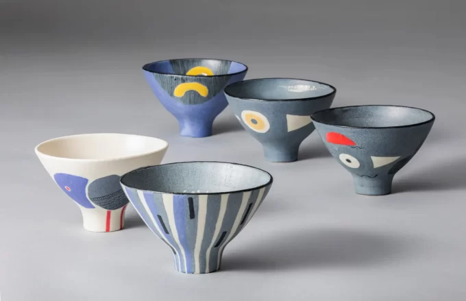 研修生が制作した九谷焼作品。伝統技法を活かした自由な表現が特徴