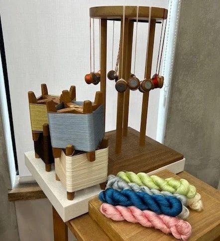 ハンドレッドステイ東京新宿では、組紐制作時、実際に使用している道具や染糸を期間限定で展示いたします。この機会にぜひ、ご覧ください。