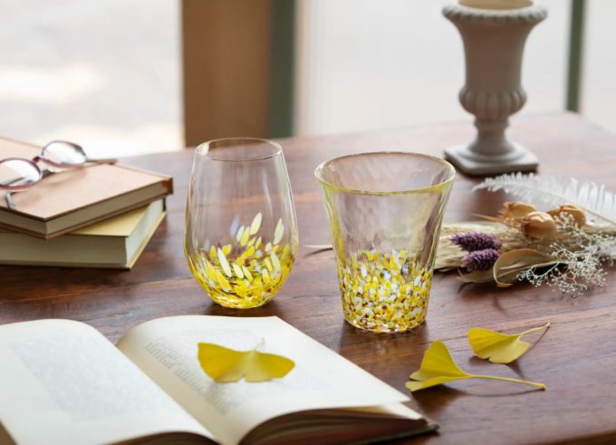 東京ミッドタウン八重洲2階にある『津軽びいどろ東京ミッドタウン八重洲店』は、青森伝統工芸品津軽びいどろ初のオフィシャルショップとしてハンドメイドガラスのテーブルウェアやインテリア製品を取り揃えております。「八重洲の秋」は、ここでしか手に入らない“東京の四季”を表現したシリーズで、人気商品のひとつです。