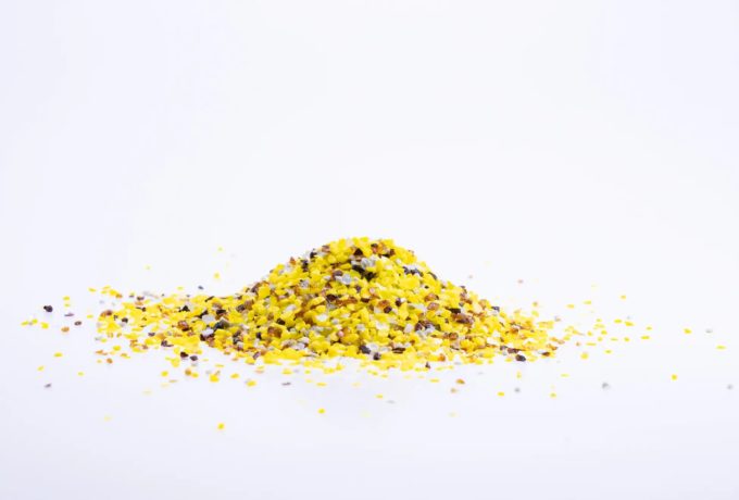 都の木がイチョウということもあり、東京は秋になるとあたり一面が黄葉し、まるで黄金色の絨毯のように埋め尽くされる風景を津軽びいどろが得意とする約130色もの色ガラス粒から厳選した色を使って表現。イチョウの黄色の中にもかすかに見えるアスファルトや木、土の色を織り交ぜながら色鮮やかに作り上げました。