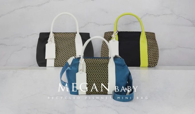 「MEGAN baby」は、廃棄漁網を再生したナイロン素材を使用したシリーズの第3弾です。第1弾として発表したハンドバッグ「MEGAN」は、海洋環境保全につながる新素材の活用と機能・デザインを両立したアイテムとして多くのメディアに取り上げられ、初回生産分は完売。現在も追加生産が続く人気シリーズとなっています。
