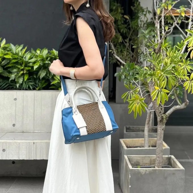 オーシャンブラック、オーシャンブルー、FUMIKODAモノグラムの3色展開で、ハンドル部分には間伐した竹を原材料にしたバイオマス素材の人工皮革を採用しています。
