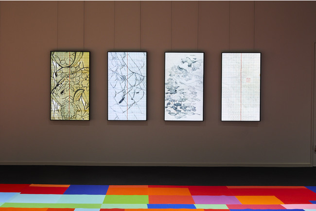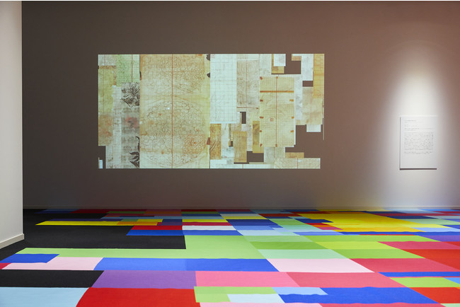 本展では、この膨大なデータを活用し、堂園 翔矢氏(コンピュテーショナル・デザイナー/プログラマー)が機械学習によって生成した新たな図案と、「カラーとコンセプト」を特徴とするクリエイティブ・ユニットSPREAD(https://spread-web.jp )が、独自の解釈で着彩した過去の図案をインスタレーションとして公開しています。
