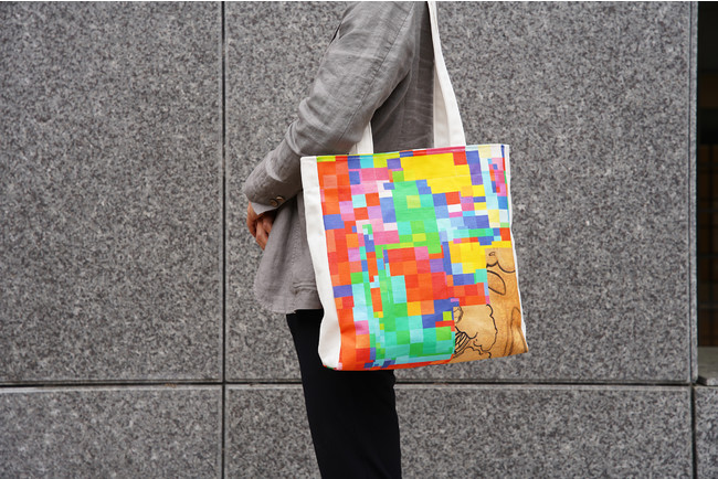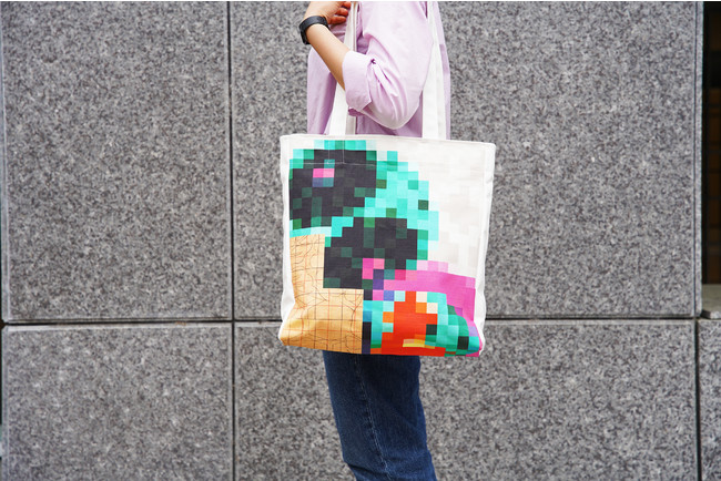 メインビジュアルをベースにしたデザインで、サイズも少し大きめのユニセックスで使えるトートバックです。ただいま京都伝統産業ミュージアムショップおよびMOCADオンラインショップ(https://mocad-shop.com/collections/exhibitions )にて予約を受付中です。