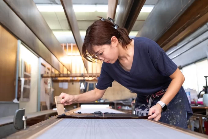 ・内容:江戸小紋の全工程(糊型付け・染料作り・蒸し・糊落とし)を一日体験。希少な伊勢型紙を使い江戸時代から続く五代目の手ほどきを受け、江戸小紋の半衿製作。