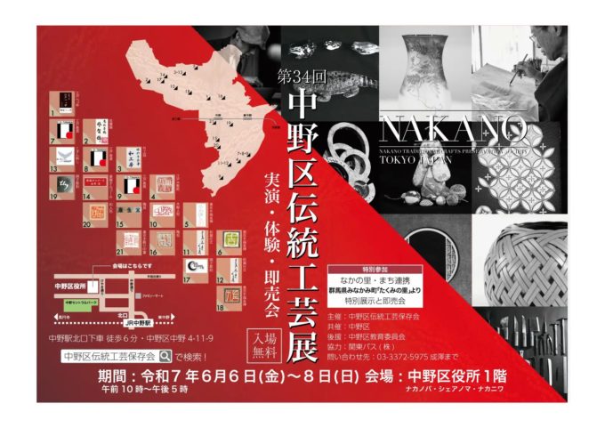 「中野区伝統工芸展」は、地域に根付いた伝統的な工芸技術を紹介し、次世代に継承するための大切なイベントです。この展示会では、中野区に伝わる優れた伝統工芸品が一堂に会し、地域の文化と職人技を深く知ることができる貴重な機会です。